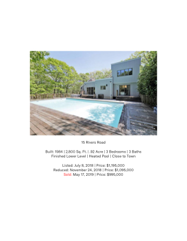 Listed: July 8, 2018 | Price: $1,195,000 Reduced: November 24, 2018 | Price: $1,095,000 Sold: May 17, 2019 | Price: $995,000