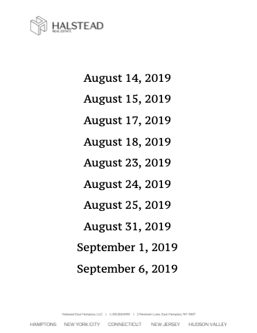 August 14, 2019 August 15, 2019 August 17, 2019 August 18, 2019 August 23, 2019 August 24, 2019 August 25, 2019 August 31, 2019 September 1, 2019 September 6, 2019