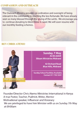 We are privileged to have him Minister with us on Sunday 7th May
