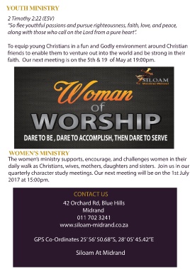 faith. Our next meeting is on the 5th & 19 of May at 19:00pm.