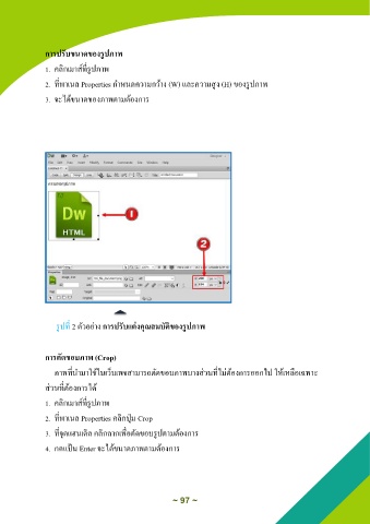 2. ที่พาเนล Properties ก าหนามวามกว้าง )W) แลดมวามสูง )H) าองรูปภาพ