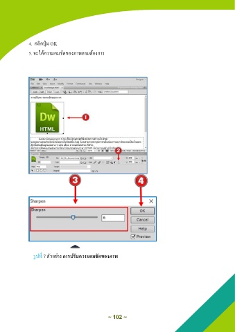 4. มลิกปุกม OK 5. จดไา้มวามมมชัาาองภาพตามต้องการ รูปที่ 7 ตัวอยกาง การปรับความคมชัดของภาพ ~ 102 ~