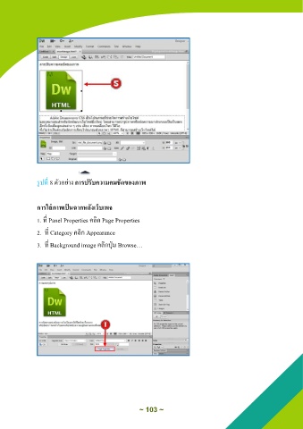 รูปที่ 8 ตัวอยกาง การปรับความคมชัดของภาพ การใส่ภาพเป็นฉากหลังเว็บเพจ 1. ที่ Panel Properties มลิก Page Properties 2. ที่ Category มลิก Appearance 3. ที่ Background image มลิกปุกม Browse… ~ 103 ~