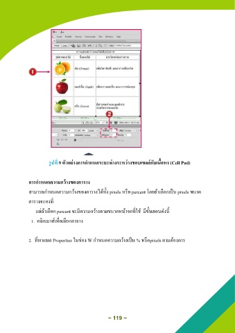 รูปที่ 9 ตัวอย่างการก าหนดระยะห่างระหว่างขอบเซลล์กับเนื้อหา (Cell Pad)