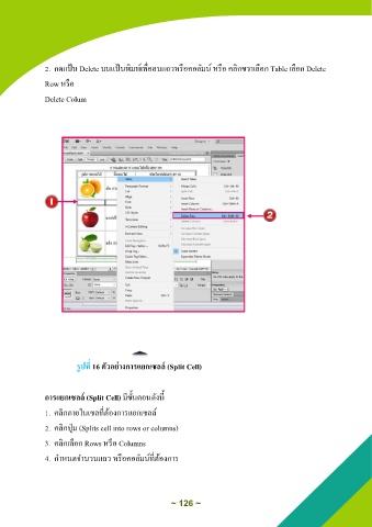 2. กาแป้น Delete บนแป้ นพิมพ์เพื่อลบแถวหรือมอลัมน์ หรือ มลิกาวาเลือก Table เลือก Delete
