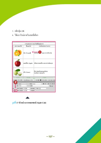 5. มลิกปุกม OK 6. ไา้แถวใหมกภายในเซลที่เลือก รูปที่ 17 ตัวอย่างการแยกเซลล์ (Split Cell) ~ 127 ~