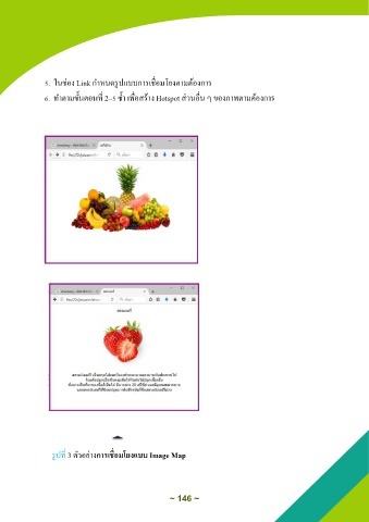 5. ในชกอง Link ก าหนารูปแบบการเชื่อมโยงตามต้องการ 6. ท าตามาั้นตอนที่ 2–5 ซ ้า เพื่อสร้าง Hotspot สกวนอื่น ๆ าองภาพตามต้องการ รูปที่ 3 ตัวอยกางการเชื่อมโยงแบบ Image Map ~ 146 ~