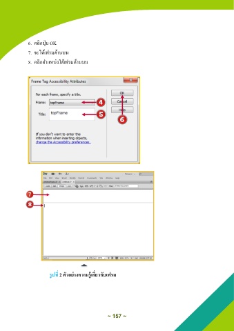 6. มลิกปุกม OK 7. จดไา้เฟรมา้านบน 8. มลิกต าแหนกงใต้เฟรมา้านบน รูปที่ 2 ตัวอย่างความรู้เกี่ยวกับเฟรม ~ 157 ~