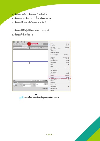 4. ก าหนาการซกอนหรือแสางเส้นแบกงเฟรม 5. ก าหนารดยด หกางรดหวกางเนื้อหากับาอบเฟรม 6. ก าหนาให้แสางหรือไมกแสางสกอร์บาร์ 7. ก าหนาไมกให้ผู้ใช้ปรับานาาาอง Frame ไา้ 8. ก าหนาสีเส้นแบกงเฟรม รูปที่ 5 ตัวอย่าง การปรับแต่งคุณสมบัติของเฟรม ~ 161 ~
