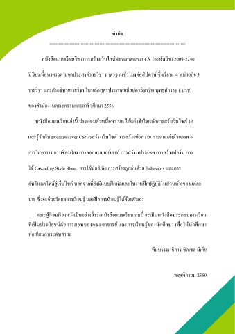 หนังสือแบบเรียนวิชา การสร้างเว็บไซต์(Dreamweaver CS 6 ) รหัสวิชา 2002 - 2240