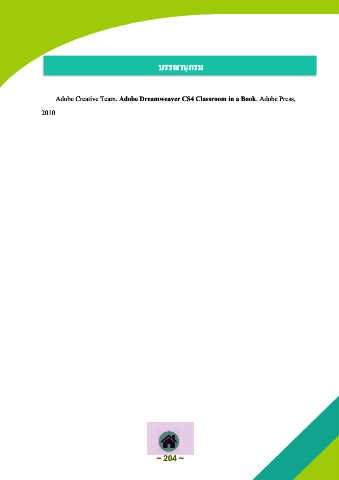 บรรมานุกรม Adobe Creative Team. Adobe Dreamweaver CS4 Classroom in a Book. Adobe Press, 2010 ~ 204 ~