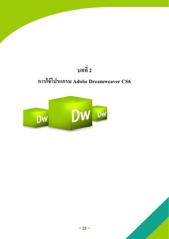 บทที่ 2 การใช้โปรแกรม Adobe Dreamweaver CS6 ~ 22 ~