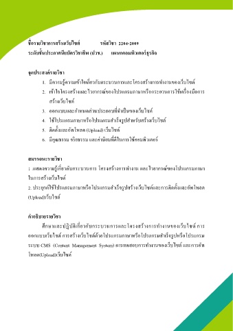 ชื่อรายวิชาการสร้างเว็บไซต์ รหัสวิชา 2204-2009