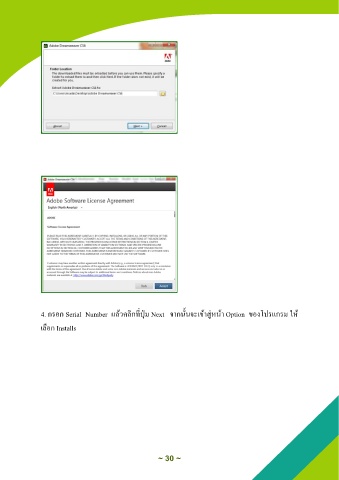 4. กรอก Serial Number แล้วมลิกที่ปุกม Next จากนั้นจดเา้าสูกหน้า Option าองโปรแกรม ให้ เลือก Installs ~ 30 ~