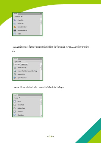 Layout เป็นกลุกมม าสั่งส าหรับวางออบเจ็มที่ใช้จัาหน้าเว็บเพจ เชกน AP Element หรือตาราง เป็น
