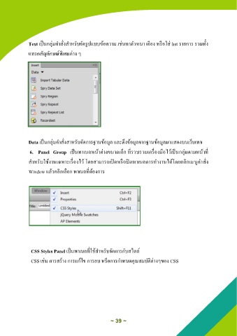 Text เป็นกลุกมม าสั่งส าหรับจัารูปแบบา้อมวาม เชกนทาตัวหนา เอียง หรือใสก list รายการ รวมทั้ง