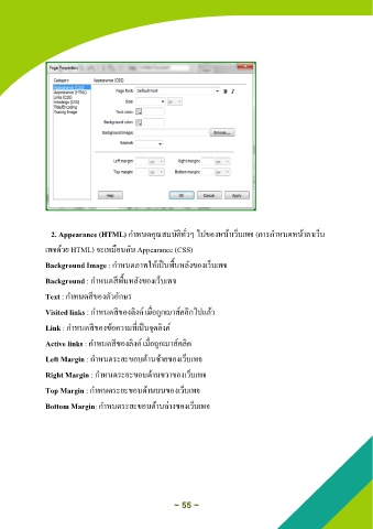 2. Appearance (HTML) ก าหนามุมสมบัติทั่วๆ ไปาองหน้าเว็บเพจ )การก าหนาหน้าตาเว็บ