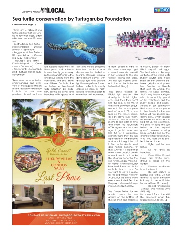 problems should be tack- beaches with quads and make her nest. However… tificial light sources (like That’s why today Turtuga-