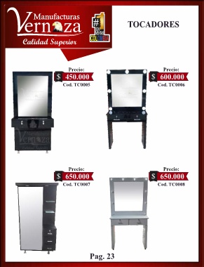 TOCADORES Precio: Precio: $ 450.000 $ 600.000 Cod. TC0005 Cod. TC0006 Precio: Precio: $ 650.000 $ 650.000 Cod. TC0007 Cod. TC0008 Pag. 23
