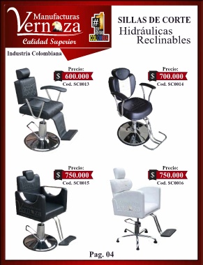 SILLAS DE CORTE Hidráulicas Reclinables Industria Colombiana Precio: Precio: $ 600.000 $ 700.000 Cod. SC0013 Cod. SC0014 Precio: Precio: $ 750.000 $ 750.000 Cod. SC0015 Cod. SC0016 Pag. 04