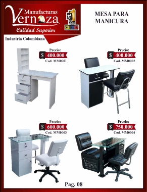 MESA PARA MANICURA Industria Colombiana Precio: Precio: $ 400.000 $ 400.000 Cod. MM0001 Cod. MM0002 Precio: Precio: $ 600.000 $ 750.000 Cod. MM0003 Cod. MM0004 Pag. 08