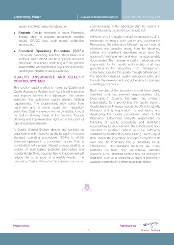 determined limits set by the laboratory. communicating to the laboratory staff the manner in