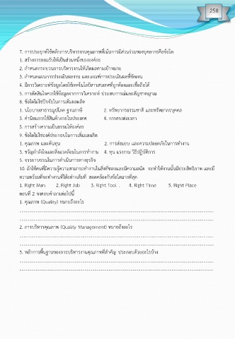 7. การประยุกต์ใช้หลักการบริหารงานคุณภาพที่เน้นการมีส่วนร่วมของบุคลากรคือข้อใด
