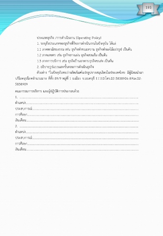 ประเภทธุรกิจ /การดําเนินงาน (Operating Policy)