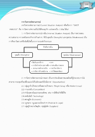 การวิเคราะห์สถานการณ์ (Current Situation Analysis) หรือเรียกว่า “SWOT