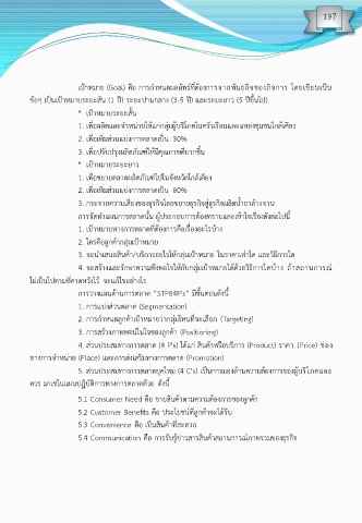 4. ส่วนประสมทางการตลาด (4 P's) ได้แก่ สินค้าหรือบริการ (Product) ราคา (Price) ช่อง