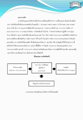 กระบวนการผลิต หมายถึง กระบวนการ แปลงสภาพวัตถุดิบและทรัพยากรการผลิตให้เป็นผลผลิต และผลผลิต