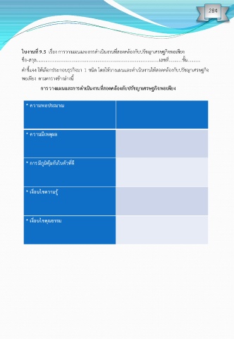 ใบงำนที่ 9.5 เรื่อง การวางแผนและการดําเนินงานที่สอดคล้องกับปรัชญาเศรษฐกิจพอเพียง