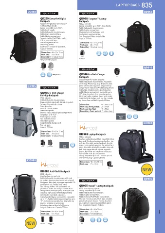 QD995 Q-Tech Charge padded laptop compartment compatible up to