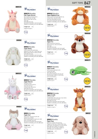 Pink coloured soft plush unicorn. Brown coloured soft plush highland cow.