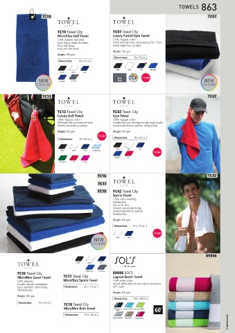 Quick drying. Highly absorbent. Pocket with self colour zip fastening (29 x 17cm).