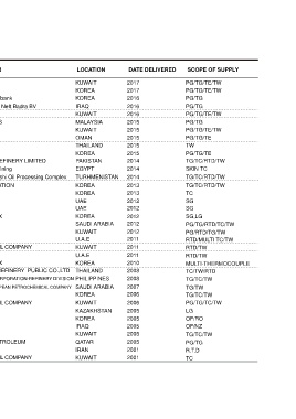 No. PROJECT NAME CUSTOMER END USER LOCATION DATE DELIVERED SCOPE OF SUPPLY