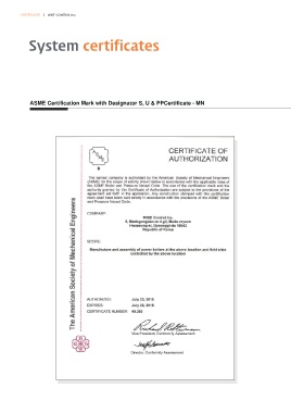 CERTIFICATES l WISE CONTROL.Inc. System certificates ASME Certification Mark with Designator S, U & PPCertificate - MN