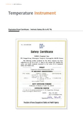 CERTIFICATES l WISE CONTROL.Inc. Temperature Instrument Explosion Proof Certificate - Intrinsic Safety (Ex ia IIC T6)