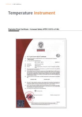 CERTIFICATES l WISE CONTROL.Inc. Temperature Instrument Explosion Proof Certificate - Increased Safety (ATEX II 2G Ex e II Gb)