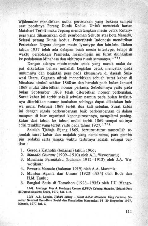 174) · Lem~p Pen cl Pen~'-8t Umum (LPPU) Cabang Manado, ~ Sejarah Pers