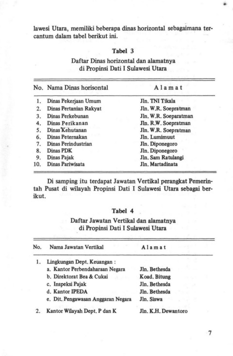 tah Pusat di wilayah Propinsi Dati I Sulawesi Utara sebagai ber-