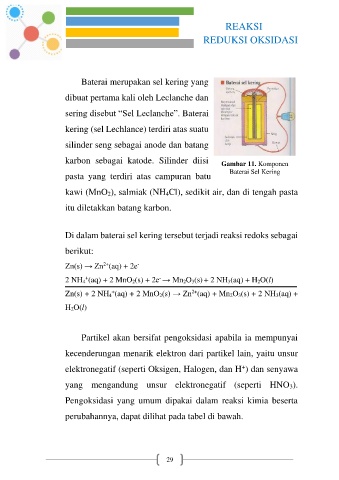 Di dalam baterai sel kering tersebut terjadi reaksi redoks sebagai