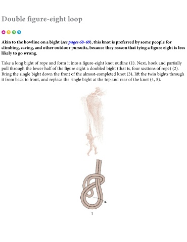 pull through the lower half of the figure eight a doubled bight (that is, four sections of rope) (2).