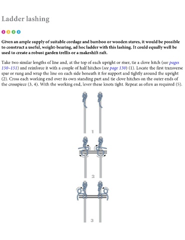 to construct a useful, weight-bearing, ad hoc ladder with this lashing. It could equally well be