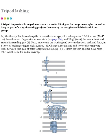 turns between each pair of poles to tighten the lashing (4, 5). Finish off with another clove hitch