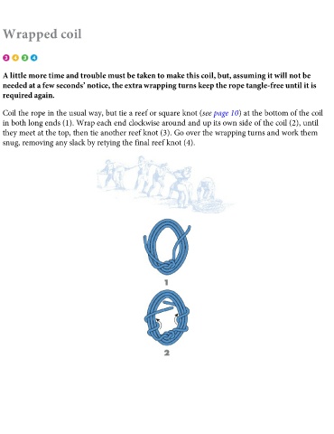 Coil the rope in the usual way, but tie a reef or square knot (see page 10) at the bottom of the coil