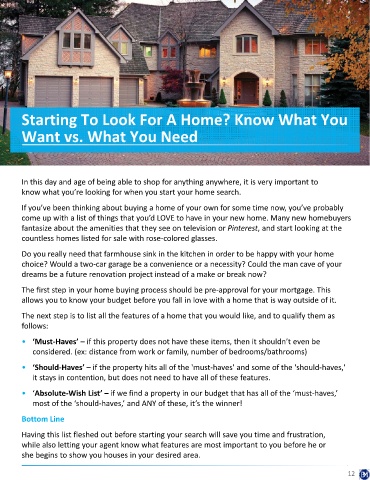 The next step is to list all the features of a home that you would like, and to qualify them as