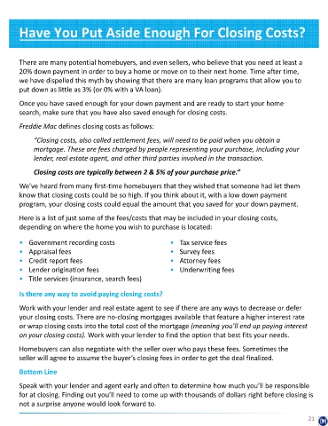 for at closing. Finding out you’ll need to come up with thousands of dollars right before closing is