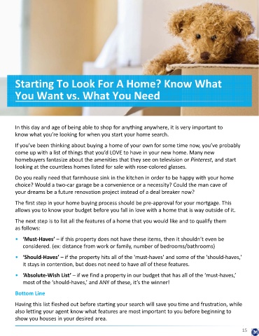 • ‘Must-Haves’ – if this property does not have these items, then it shouldn’t even be