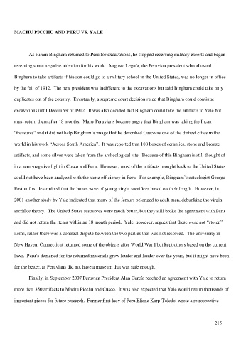 artifacts, and some silver were taken from the archeological site. Because of this Bingham is still thought of